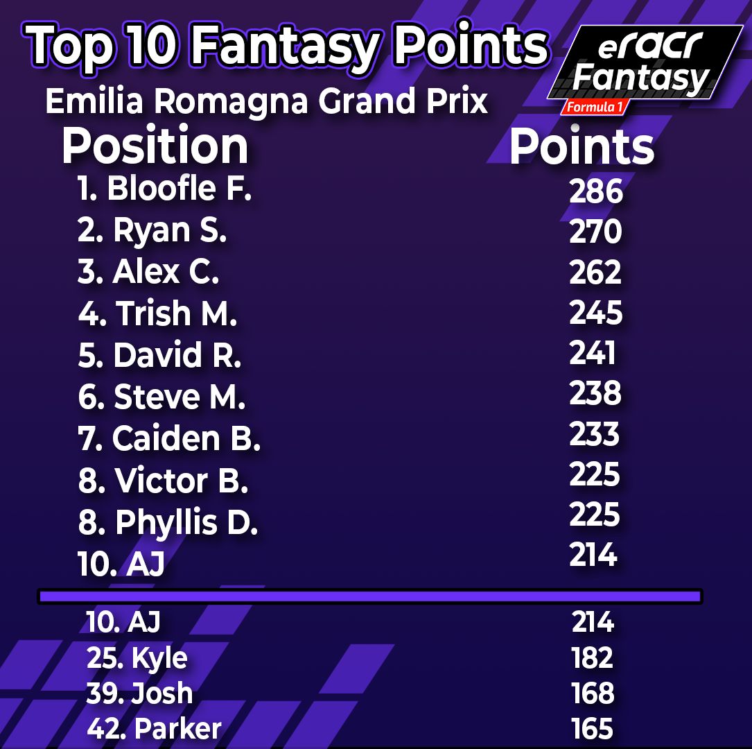 eRacr Fantasy Weekly Preview 4/25