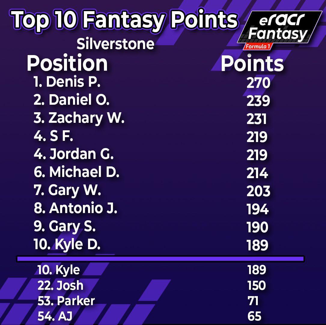 - eRacr Fantasy Weekly Preview 7/5