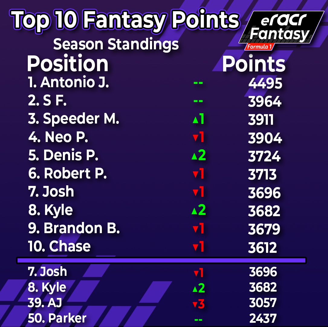 eRacr Fantasy Leaders