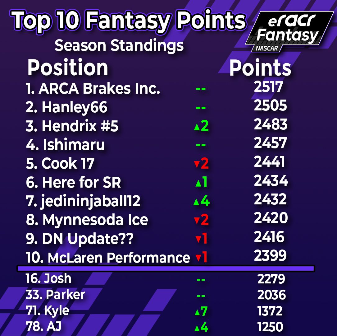 eRacr Fantasy Leaders