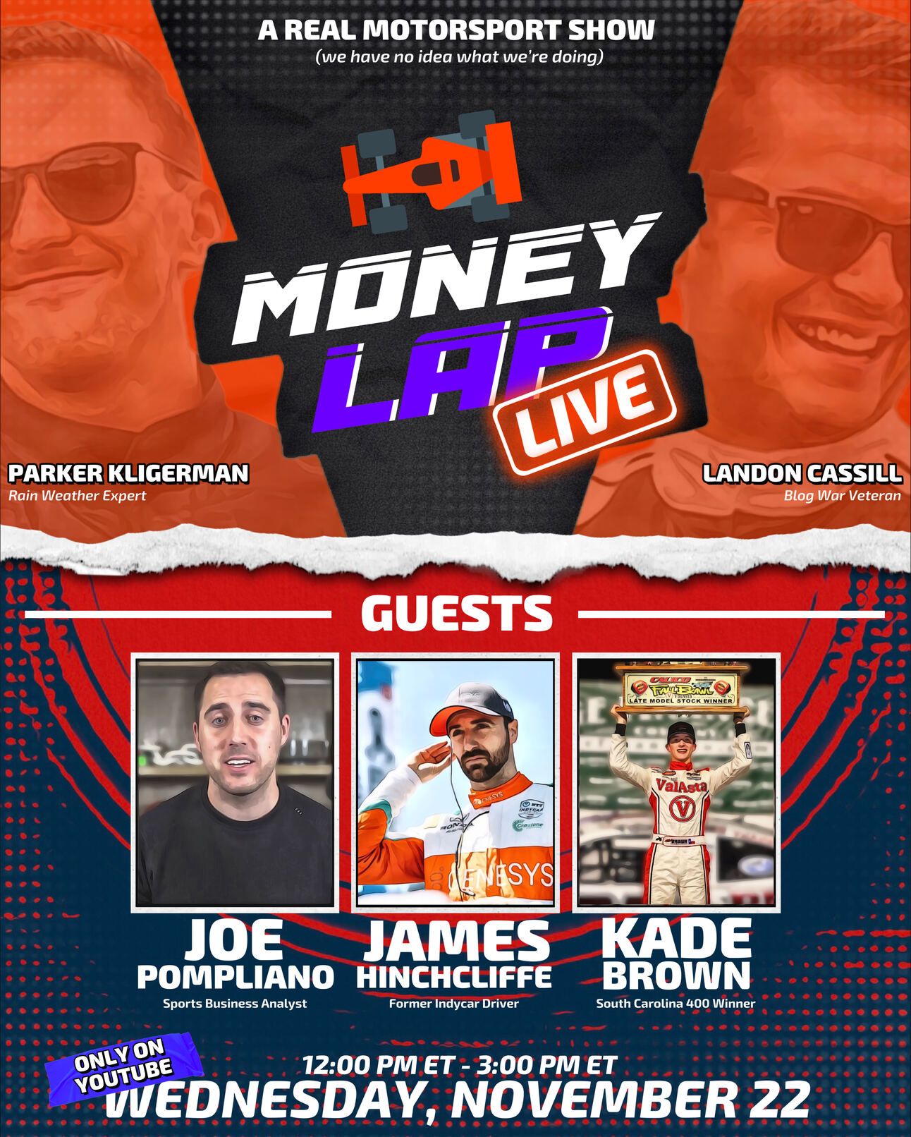 If you missed last week’s the Money Lap Live, don’t worry! Catch up on the three hours of pure motorsports madness here! Last week we had Joe Pompliano, James Hinchcliffe and Kade Brown join in on the fun. Stay tuned as we’ll be doin this for the next four weeks!